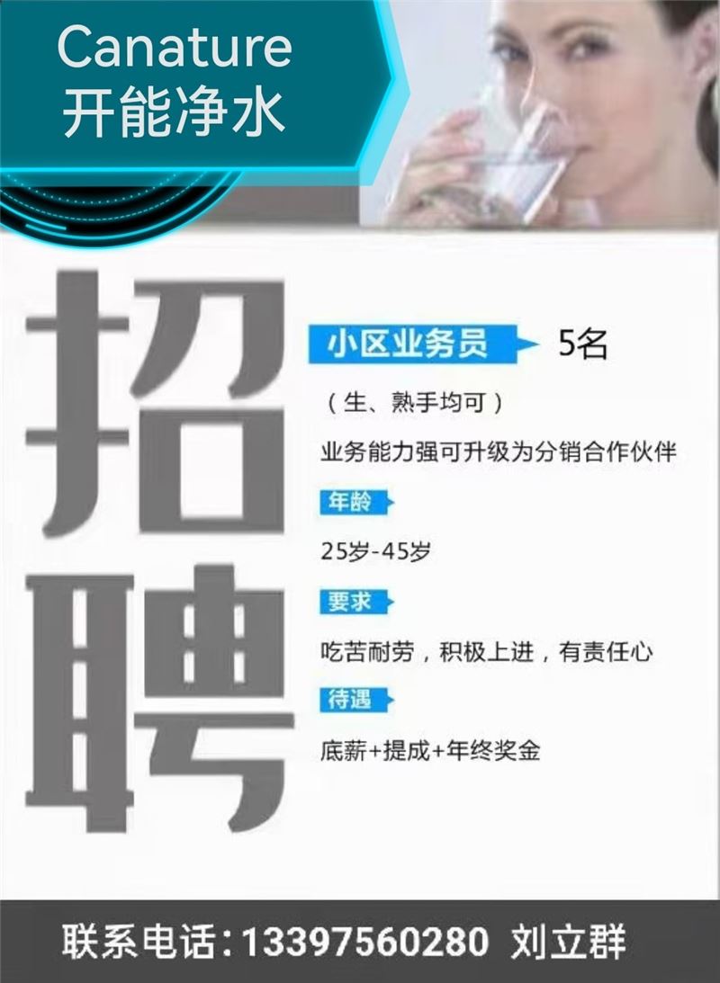 汉寿开能净水招聘业务员精英!开能净水,二十多年专注净水领域,品质值得信赖!选择开能,选择健康,让每一滴水都充满活力!9 1 h j d c o m